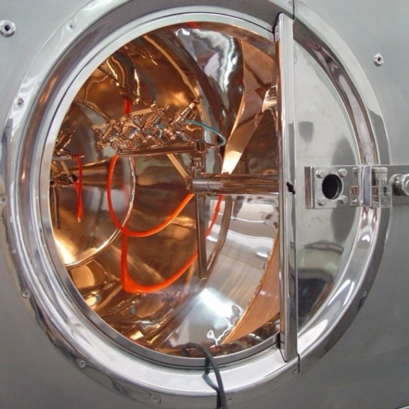 The product to be coated is placed in a clean rotating drum, where it undergoes complex trajectory movements. During this process, the coating medium is automatically sprayed onto the product according to predefined process parameters. Simultaneously, hot air is supplied under negative pressure to quickly and evenly dry the coating medium, forming a strong and smooth surface film on the product.